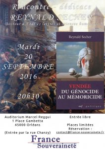 [Conférence] Reynald Secher : « Vendée : du génocide au mémoricide » – 20/09/16